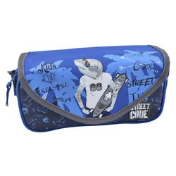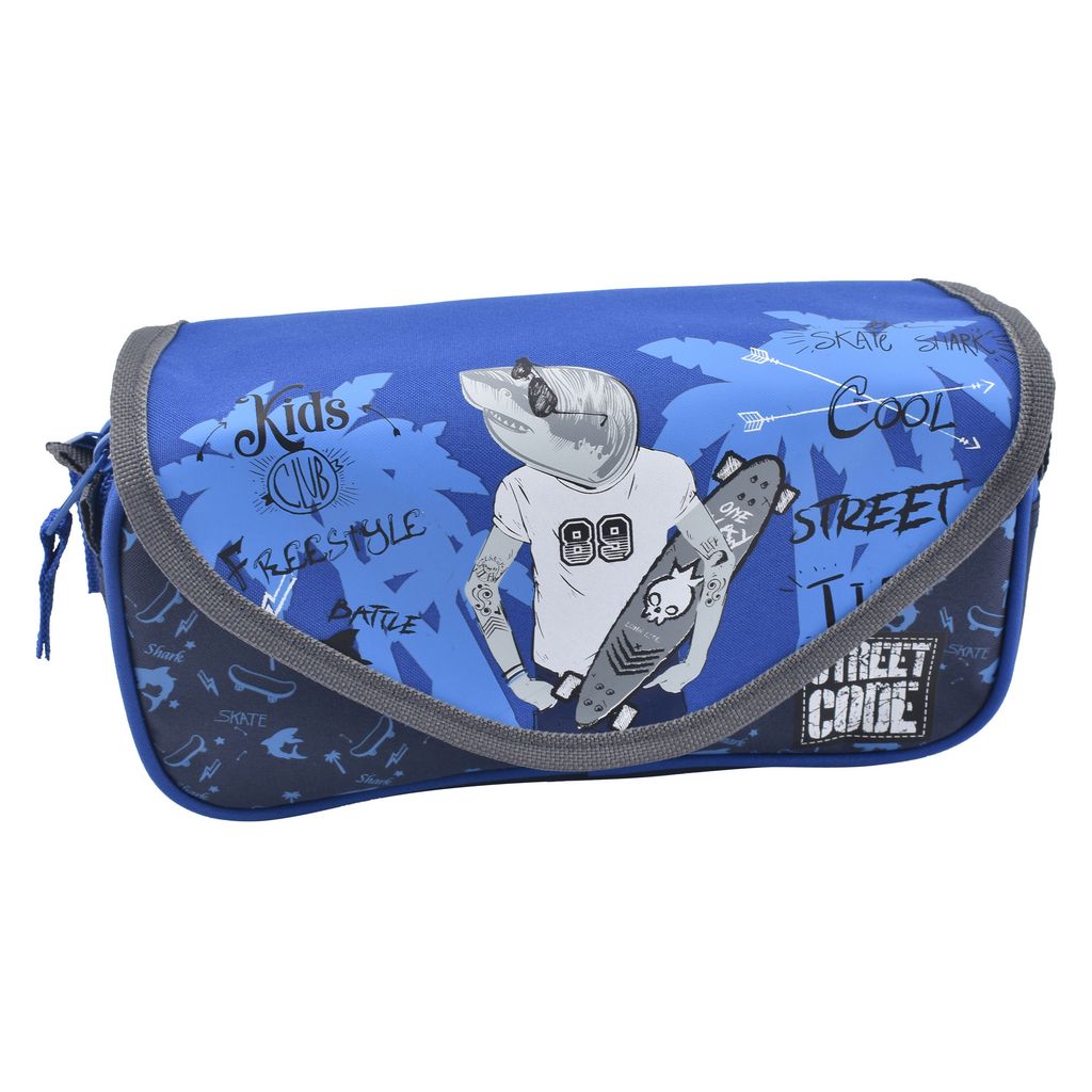 Trousse scolaire 2 compartiments avec rabat polyester bleu REQUIN STREET CODE