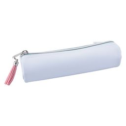 Trousse scolaire ronde avec charm pompon polyuréthane bleu pastel