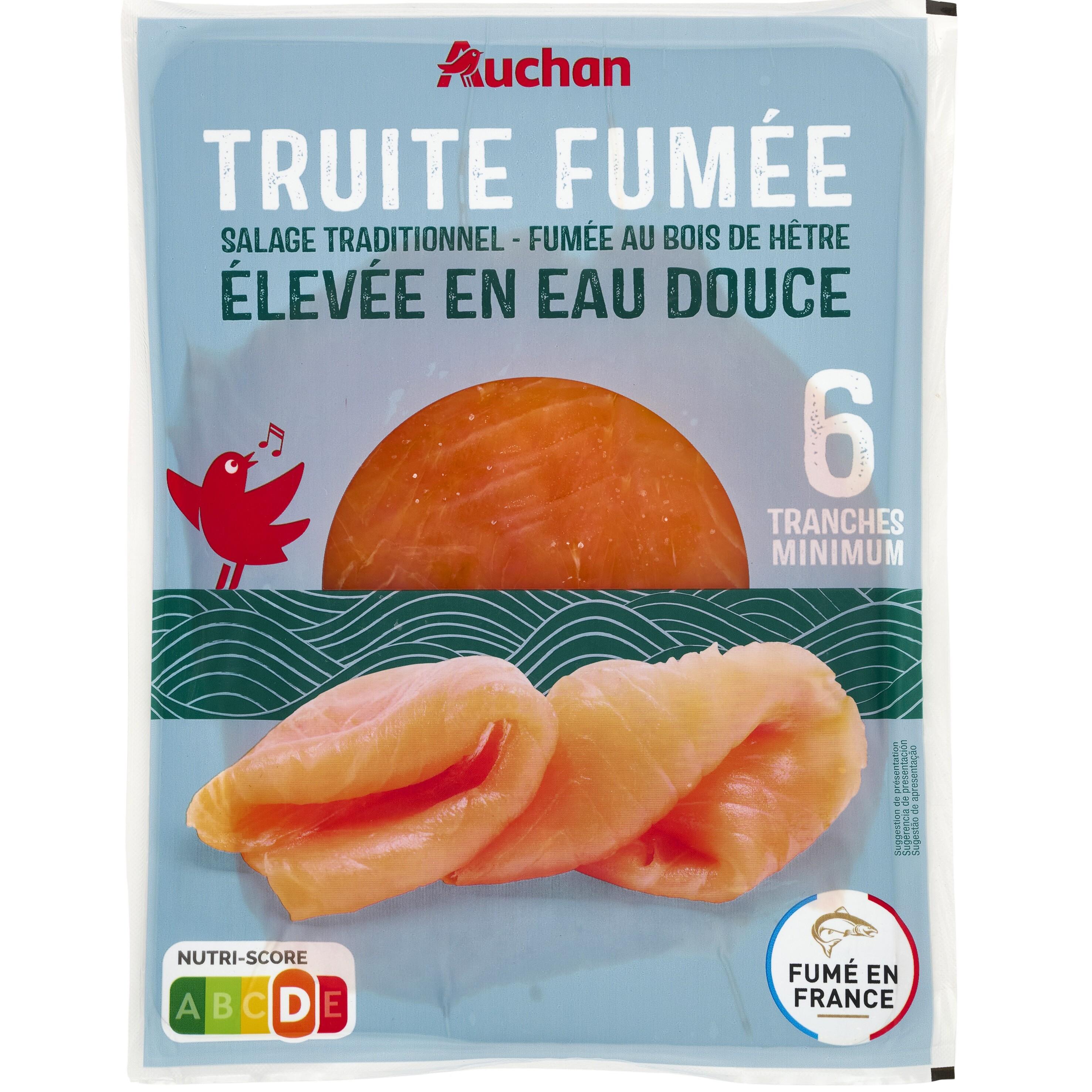 Truite arc-en-ciel fumée au bois de hêtre, élevée en eau douce en France, Espagne ou Portugal.Riche en acide gras oméga 3