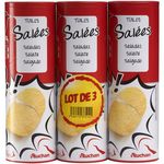 Ingrédients : Pomme de terre déshydratée 54%, huile de tournesol, amidons (BLÉ et pomme de terre), sirop de glucose, sel 1,3%, émulsifiant : mono- et diglycérides d’acides gras, huile de colza.  Traces éventuelles de lait.