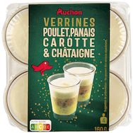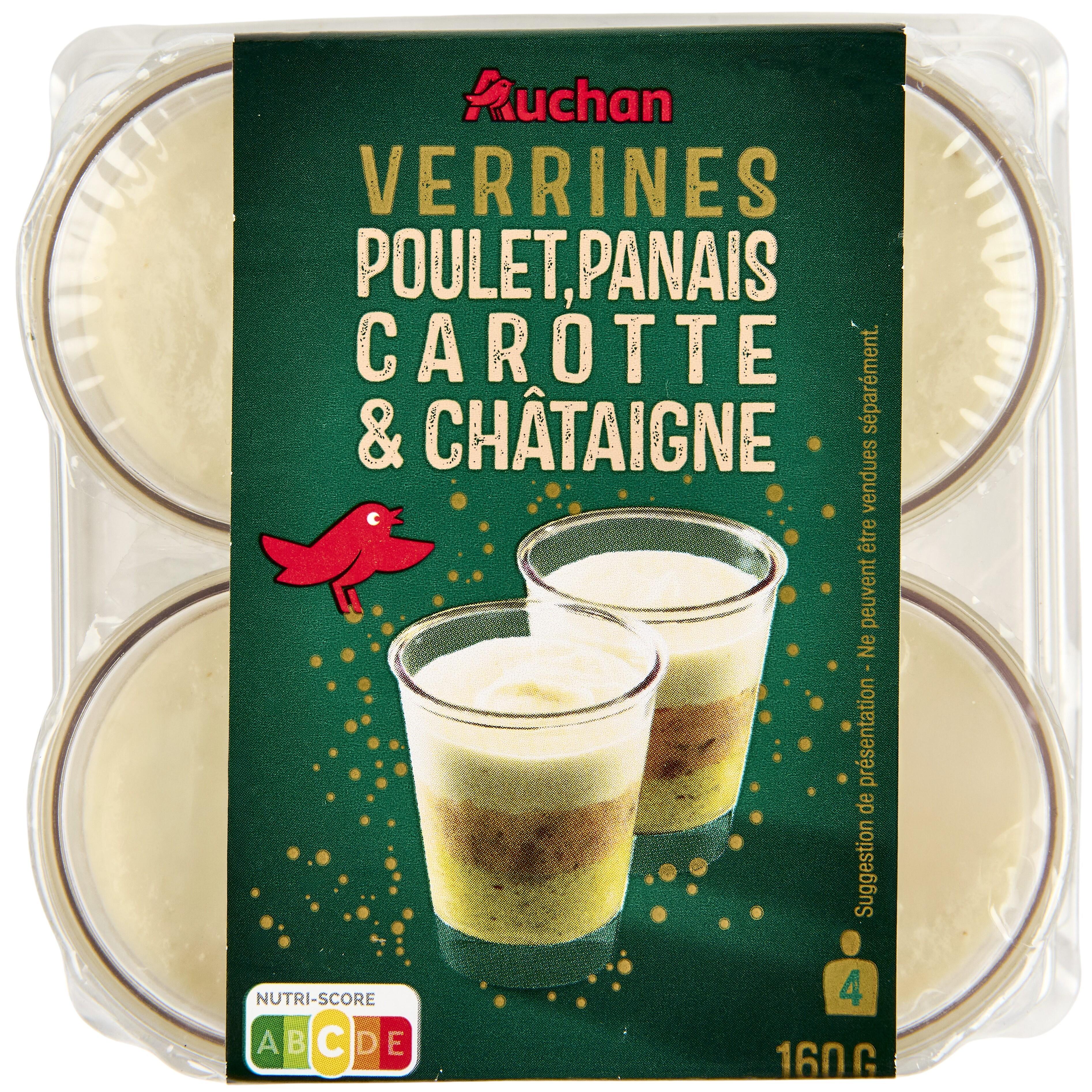 Verrines poulet, panais, carotte et châtaigne