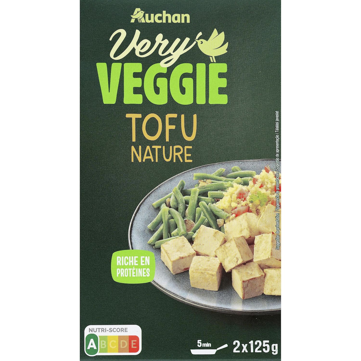 Le tofu AUCHAN est l'incontournable des recettes végétales. Riche en protéines et source de fibres, il équilibre vos repas.