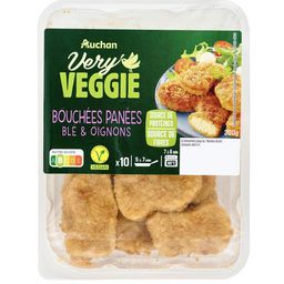 Les bouchées panées au blé et à l'oignon AUCHAN sont l'incontournable alternative gourmande et riche en proteines. Elles ravierons les petits comme les grands adeptes du végétal !