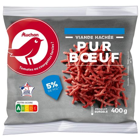 Cette viande hachée pur bœuf pur bœuf d'origine française a été préparée avec des muscles à 5% de matière grasse, pour les amateurs de viande maigre. Elle se cuit rapidement à la poêle et permet la réalisation d'une multitude de recettes en toute simplicité
