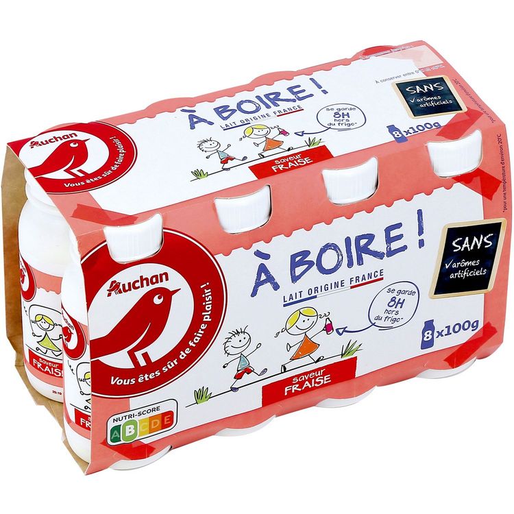 Yaourt à boire sucré saveur fraise, source de calcium et vitamine D