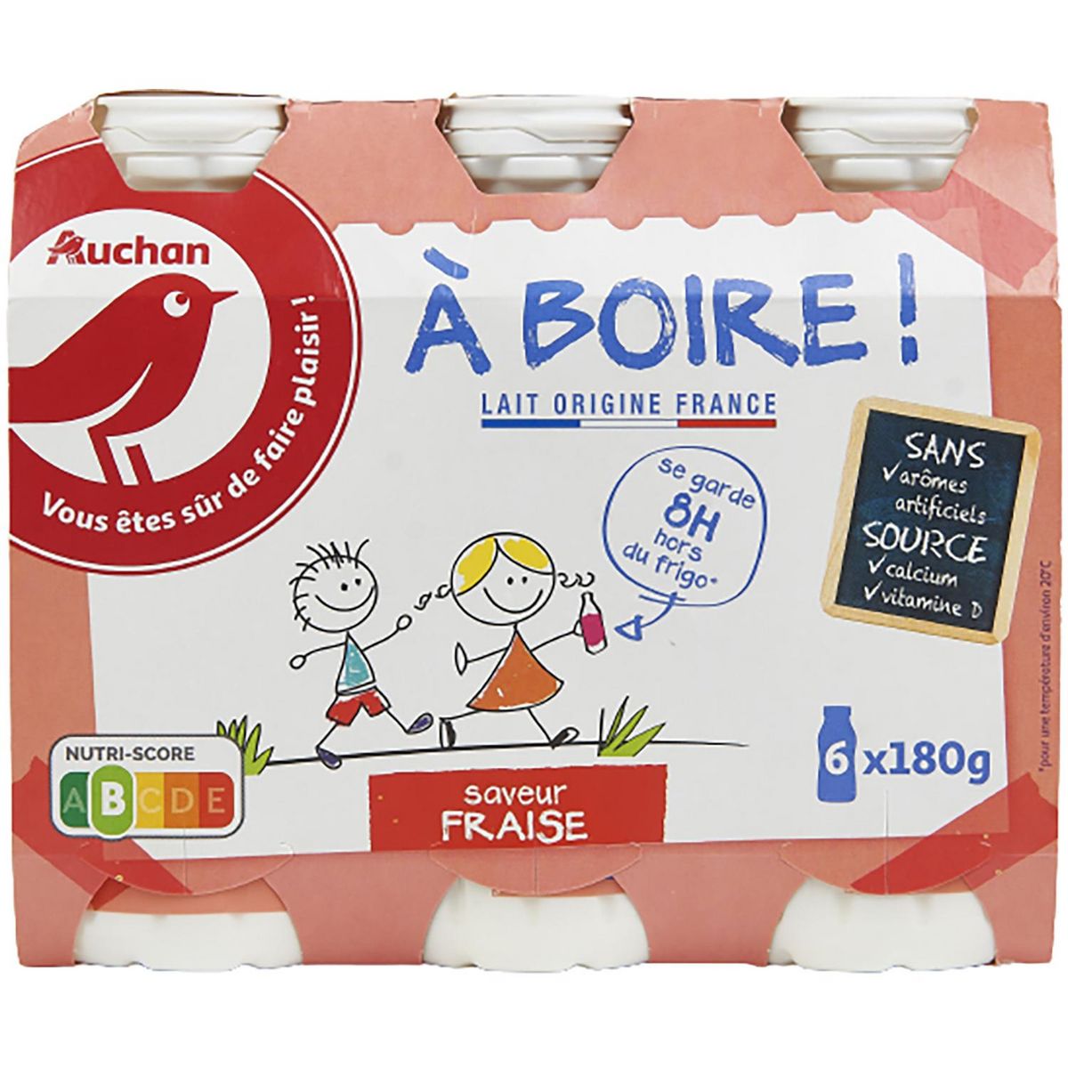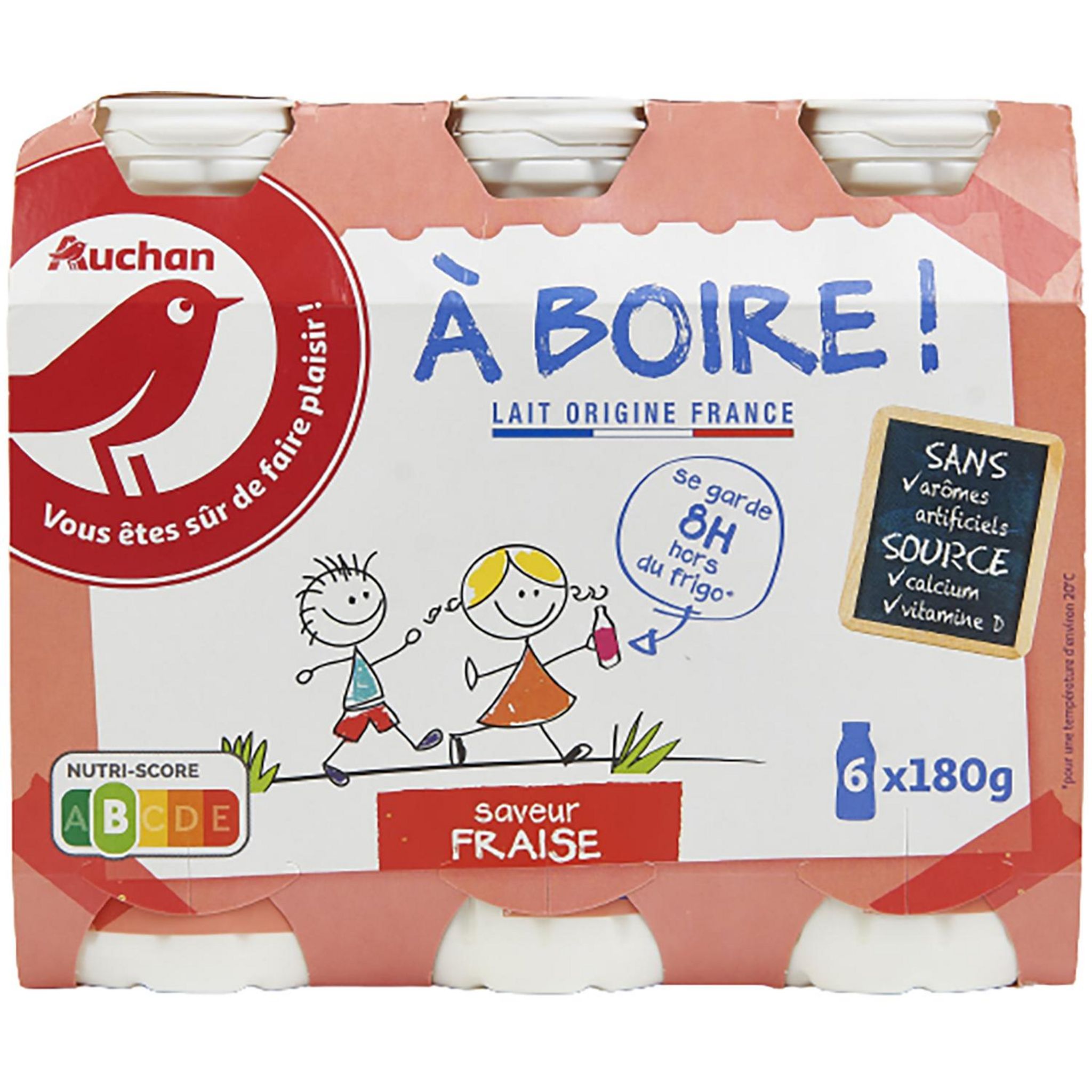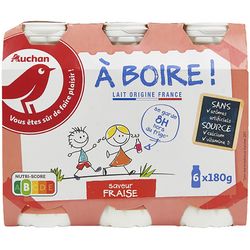 Yaourt à boire sucré saveur fraise, source de calcium et de vitamine D