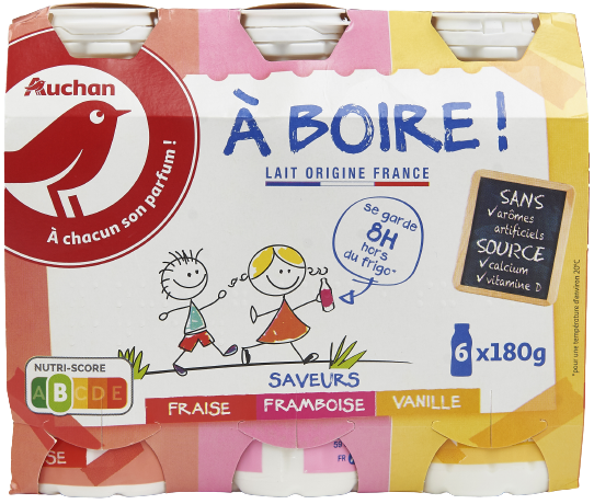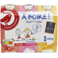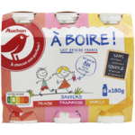 Yaourt à boire sucré saveur fraise ou saveur framboise ou saveur vanille, source de calcium et de vitamine D