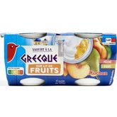 Yaourt brassé sucré au lait entier et à la crème, sur lit pêche ou poire, avec arômes naturels