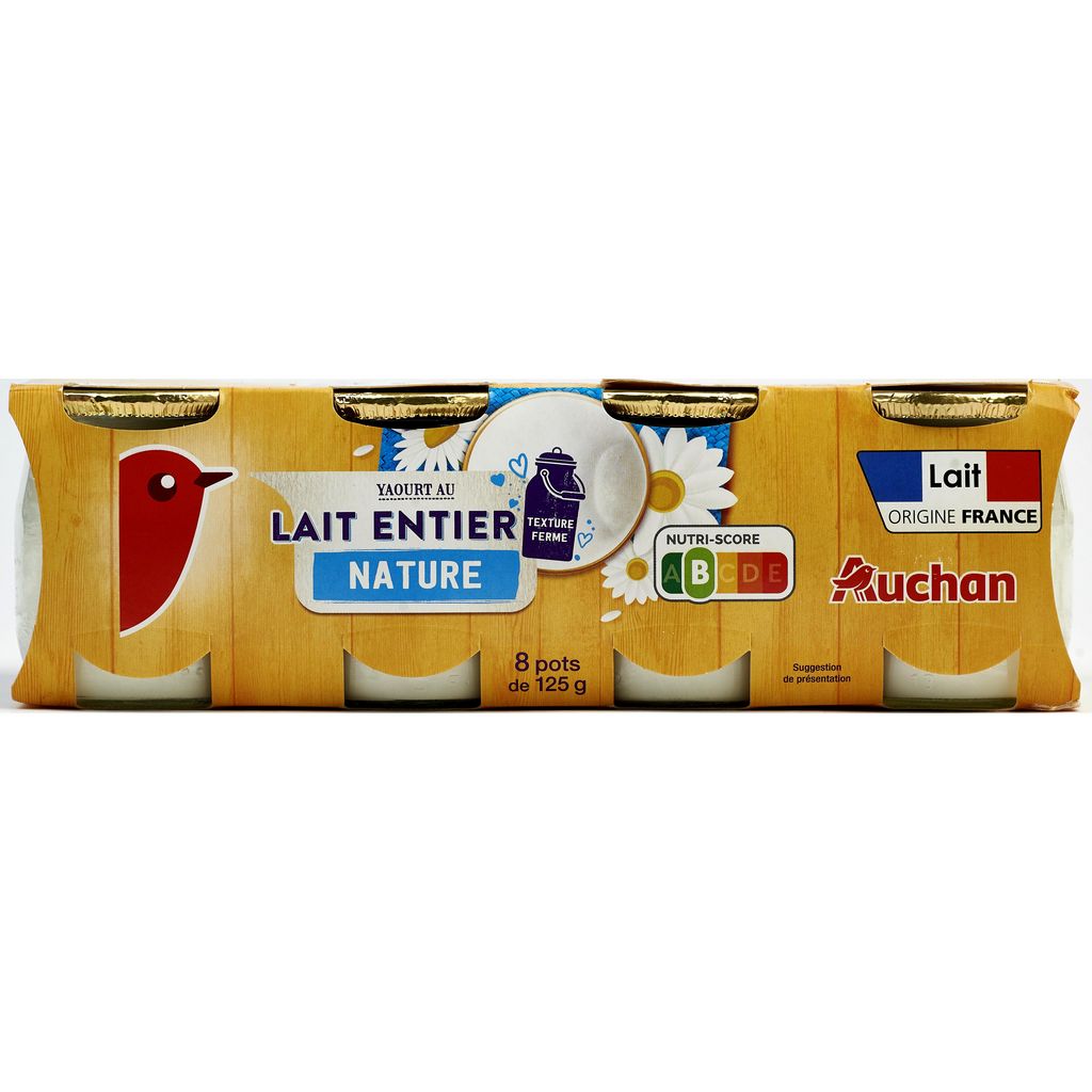 Avec le yaourt pot verre nature Auchan, dégustez un yaourt au lait entier origine France, à la texture ferme et fondante, conditionné dans un emballage 100% recyclable.