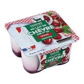 Ingrédients : Lait entier de chèvre 75%, cerise 10%, sucre 7,6%, crème de lait de chèvre 4,8%, amidon de maïs, épaississants : carraghénanes, gomme guar, jus de carotte noire, arôme naturel, jus de citron concentré, ferments lactiques. Elaboré à partir de lait origine France.