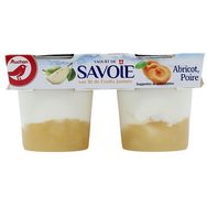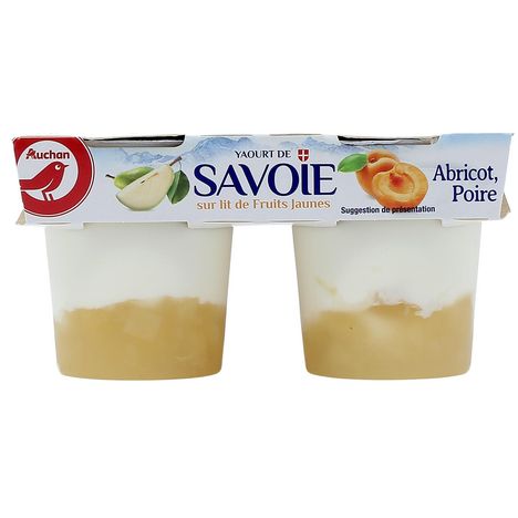 Le Yaourt de Savoie Auchan a été revisité. Le lait est toujours de montagne mais la recette a été réduite en sucre et les fruits restent gourmands : poire et abricot.