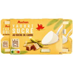 Redécouvrez le plaisir simple d'un yaourt nature, subtilement sucré au sucre de canne, avec le Yaourt Nature Sucré de Canne d'Auchan. Une gourmandise saine et savoureuse pour toute la famille!