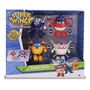 - 4 figurines 12 cm Super Wings : Jett Police, Paul, Donnie Construction et Astro.