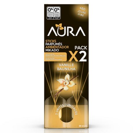 DIFFUSEUR BATONNETS VANILLE PACK DUO ECONOMIQUE 2X 30 ML AUX HUILES ESSENTIELLES ET 0% ALCOOL