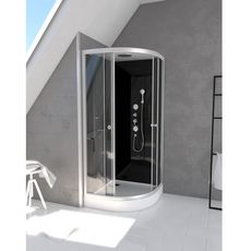 Cabine de douche quart de rond Hydromassante noire 90x90 cm - ROUND BLACK II