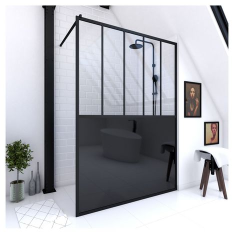 Paroi de douche à l'italienne style verrière 140x200 cm - BLACK INDUS 140
