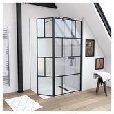 Paroi de douche type indusriel noir avec volet piovant 90x195 cm - BRICKS 90+40