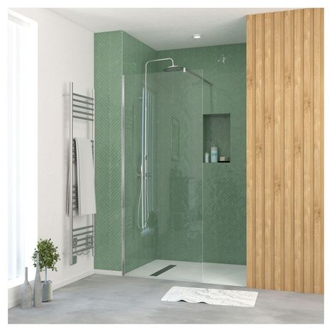 En savoir +La paroi de douche à l’italienne, moderne et pratique, facilite l’accès à la douche tout en rendant votre salle de bain plus lumineuse et spacieuse. La finition chrome des profilés et du bras de maintien ajoute une touche élégante à votre décoration. Le verre trempé de 5 mm, plus solide que le verre ordinaire, vous garantit une sécurité accrue contre les chocs.