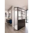AURYS Paroi de douche, modele Baleares Atelier 14. Dimension: L 1400 mm x H 1980 mm. Verre 8 mm traité Timeless by Saint-Gobain, 1 face avec décor Atelier 14 par sérigraphie noire mat. Verre trempé de sécurité selon EN12150. Profilé fixe et barre de stabilisation en noir mat. Fabricant Saint-Gobain