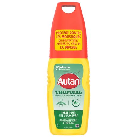 La lotion spray Autan® Tropical est un produit répulsif anti-moustiques adapté à toute la famille. Idéal pour les activités en extérieur ou les séjours dans des pays tropicaux . Sa formule contient 20,264 % d'icaridine et offre jusqu’à 6 heures de protection immédiate contre les moustiques tigres et tropicaux. Autan® Tropical est une solution facile et rapide pour vous protéger contre les moustiques afin que vous puissiez vivre comme vous le souhaitez. Il est testé dermatologiquement et a été accrédité par l'organisme Skin Health Alliance (une accréditation dermatologique indépendante qui certifie les produits). Utilisez les produits répulsifs avec précaution. Avant toute utilisation, lisez l’étiquette et les informations concernant le produit.