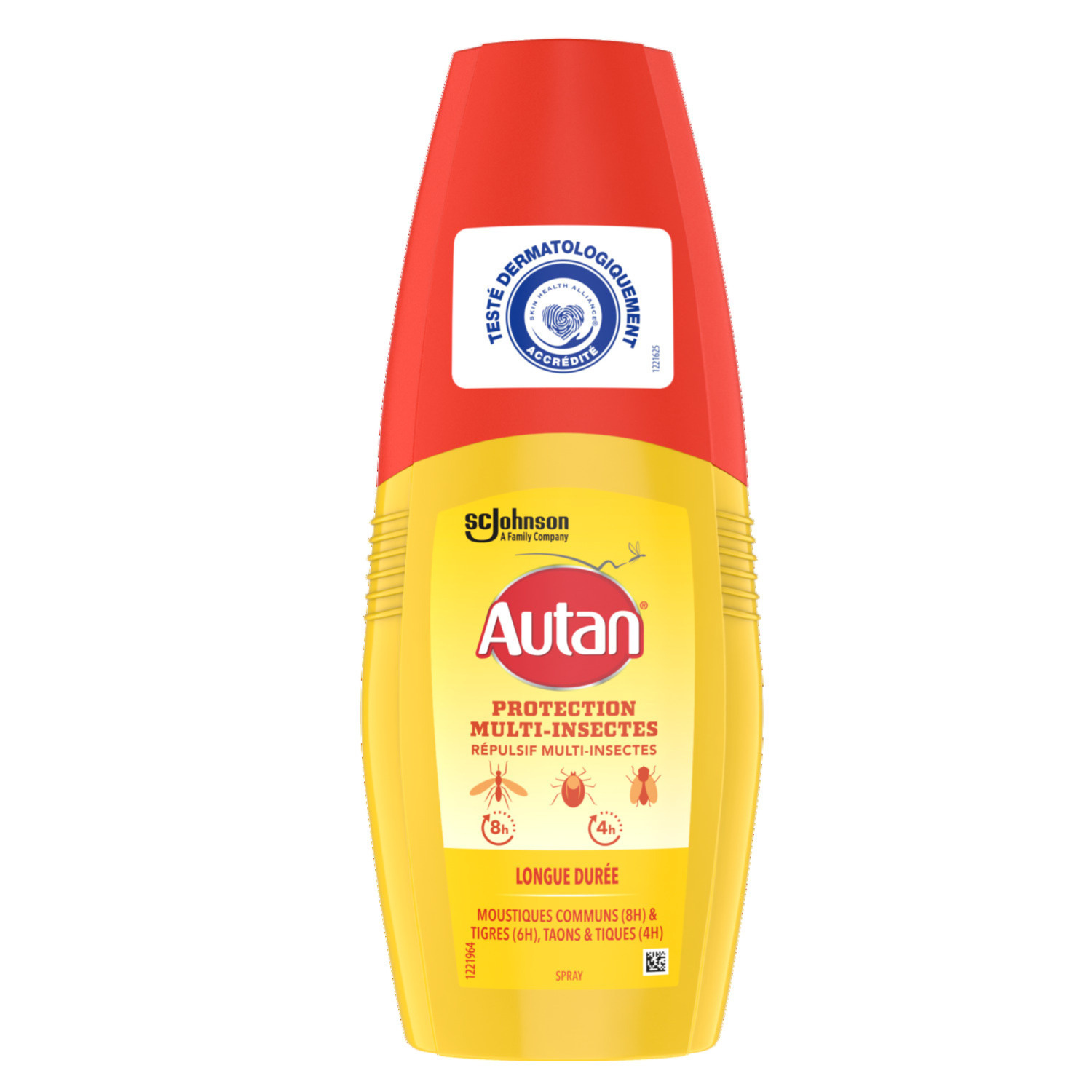 Autan® Protection Multi-insectes Spray est un produit anti-moustiques qui offre à toute votre famille une protection contre les moustiques communs, les moustiques tigres, les insectes piquants (tels que les mouches des étables et taons) et les tiques. Il offre jusqu’à 8 heures de protection contre les moustiques communs, jusqu’à 6 heures de protection contre les moustiques tigres et jusqu’à 4 heures de protection contre les taons et les tiques. La formule efficace de ce spray anti-insectes contient 20% d’icaridine et convient aux enfants de plus de 2 ans. Le Spray Autan® Multi-insectes peut être vaporisé directement sur la peau ou dans la paume des mains pour être ensuite étalé sur les zones sensibles. Il est testé dermatologiquement et a été accrédité par l'organisme Skin Health Alliance (une accréditation dermatologique indépendante qui certifie les produits).Utilisez les produits répulsifs avec précaution. Avant toute utilisation, lisez l’étiquette et les informations concernant le produit.