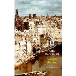 1946. Un journaliste erre dans les ruines des villes allemandes anéanties par les bombardements. Il se nomme Stig Dagerman, il est là pour les besoins d'un reportage mais il est avant tout écrivain. Quelques semaines durant, il va observer, questionner, descendre dans les caves à la rencontre de ceux qui s'y terrent, s'interrogeant lui-même, méditant sur la souffrance et l'angoisse, la haine et la culpabilité. Peu à peu prend forme Automne allemand, ce livre qui, depuis sa parution chez Actes Sud en 1980, n'a cessé de s'imposer comme un témoignage de première force sur les conséquences de la défaite allemande et le destin de l'Europe.