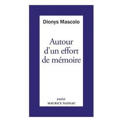 AUTOUR D'UN EFFORT DE MEMOIRE, SUR UNE LETTRE DE ROBERT ANTELME. SUIVI DE UN GRAND LIVRE A RELIRE, L'ESPECE HUMAINE, Mascolo Dionys
