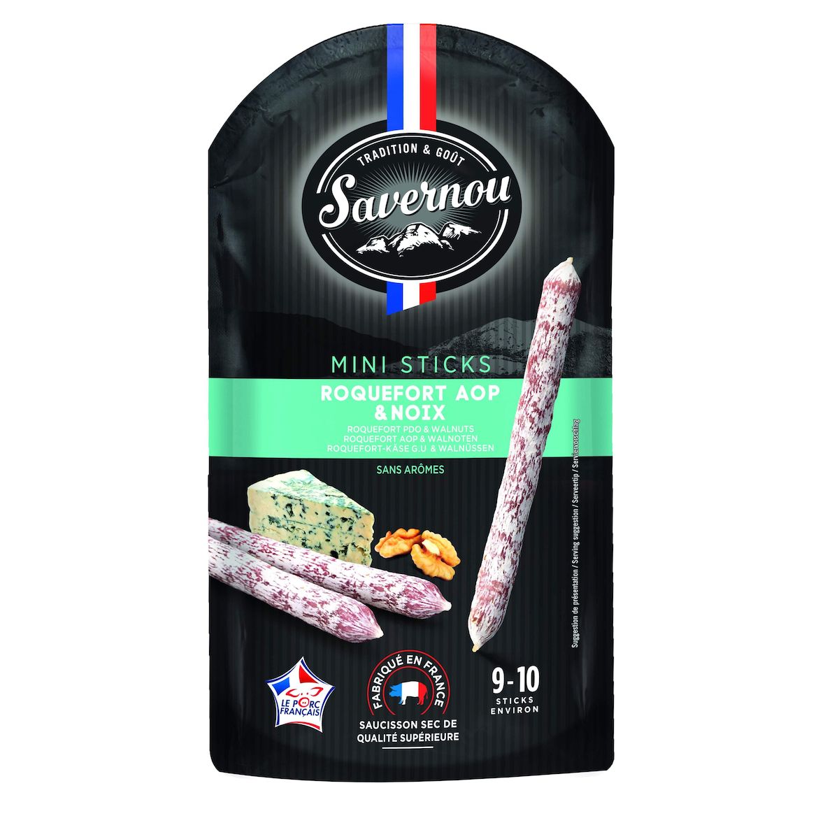 Mini sticks de saucissons de qualité fabriqués à partir de viande de porc d'origine française. Une recette qui ne manque pas de caractère avec du Roquefort français AOP! Idéal à grignoter sur le pouce, partout et à tout moment de la journée, en solo ou à partager entre amis à l'apéritif. Se substitue également aux chips par exemple dans une formule snacking!