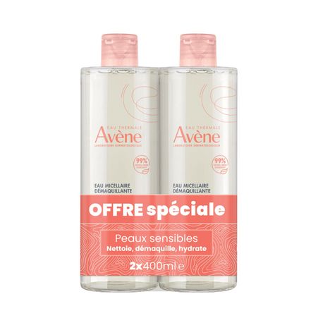 Eau Thermale Avène - Les Essentiels - Eau micellaire démaquillante Peaux sensibles Visage Yeux Lèvres Duo 2 x 400 ml