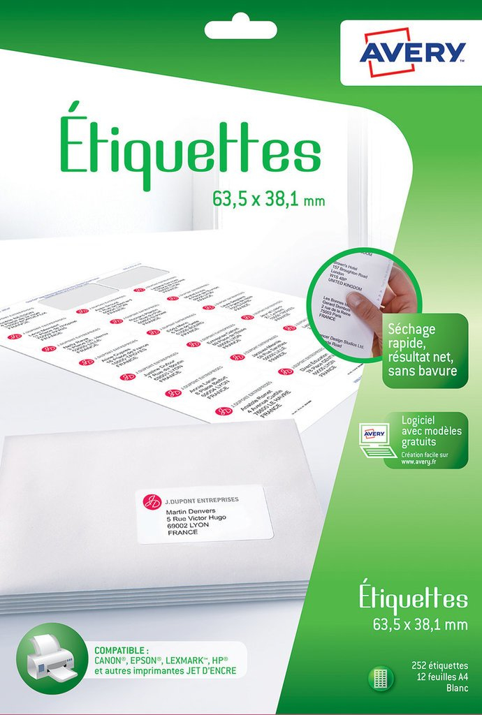 | Quantité - Composition | 252 étiquettes blanches - 63,5 x 38,1 mm | |