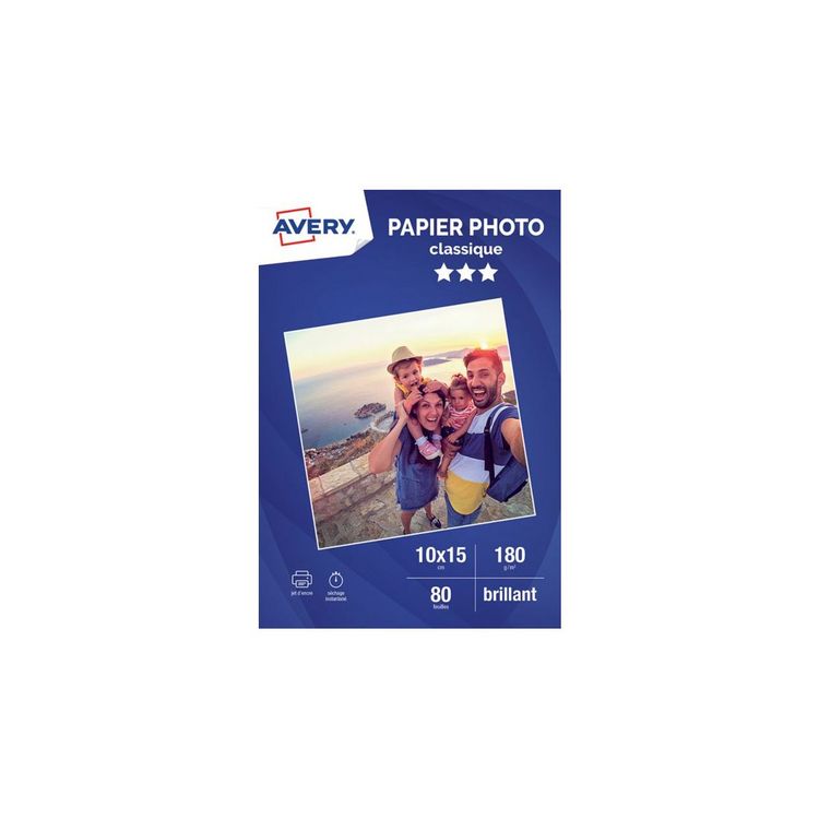Obtenez un tirage professionnel avec ce papier photo 10X15cm brillant Avery. Le revêtement spécial de ce papier premium comparable au papier photographique des professionnels, permet d’obtenir des couleurs nettes et intenses, une brillance et des contrastes renforcés, et un séchage instantané.
