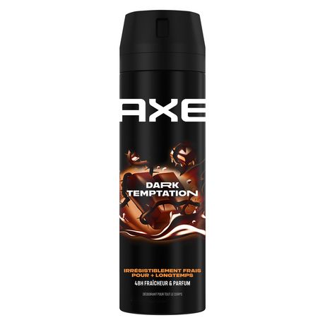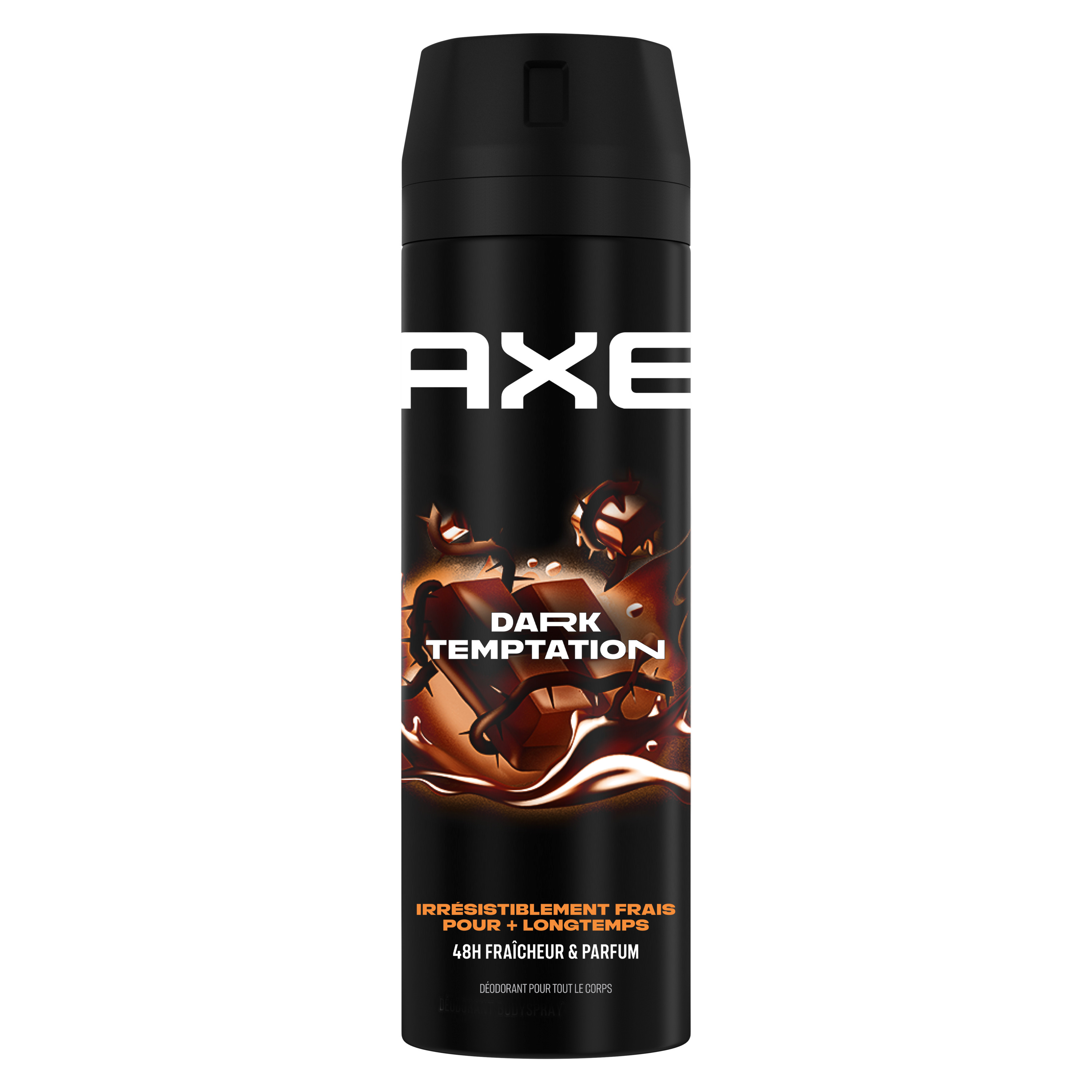 Sens irrésistiblement frais pour plus longtemps avec le nouveau déodorant homme spray AXE Dark Temptation au format 200 ml. Sa nouvelle technologie anti-odeur renforcée en actifs de zinc et brevetée le rend imbattable face à ses concurrents. Pour la 1ère fois sur le marché des déodorants homme, le parfum frais de chocolat et de tonka dure jusqu'à 48 h. Cette nouvelle formule est certifiée Peta, ce qui signifie qu'aucun test n'est fait sur les animaux dans le monde entier. Secoue, tourne et vaporise le déodorant à 15 cm du corps ou des aisselles. En plus, son emballage est composé d'au moins 25 % d'aluminium recyclé et est majoritairement recyclable, alors dépose-le dans le bac de tri ! Tu aimes le parfum de ce déodorant ? AXE Dark Temptation existe aussi en gel douche pour encore plus de fraîcheur. Depuis 1983, la marque AXE, N°1 des déodorants en France*, accompagne les hommes au quotidien avec sa gamme complète de soins d'hygiène : déodorants, anti-transpirants, gels douche et eaux de toilette. Tout ce dont un homme a besoin pour affirmer son style et rester confiant tout au long de la journée. Car ce qui rend un homme attirant, c'est avant tout son propre style ! Nos produits ont une fragrance sensuelle aux notes sophistiquées, ce qui te permet de rester frais, confiant et de sentir bon, même lors des coups de chaud du quotidien. *CAM P9 2024 en ventes valeurs HMSM.