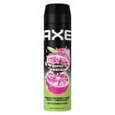 Sens irrésistiblement frais pour plus longtemps avec le nouveau déodorant homme spray AXE Epic Fresh au format 200 ml. Sa nouvelle technologie anti-odeur renforcée en actifs de zinc et brevetée le rend imbattable face à ses concurrents. Pour la 1ère fois sur le marché des déodorants homme, le parfum frais d'ananas tropical et de pamplemousse dure jusqu'à 48 h. Cette nouvelle formule est certifiée Peta, ce qui signifie qu'aucun test n'est fait sur les animaux dans le monde entier. Secoue, tourne et vaporise le déodorant à 15 cm du corps ou des aisselles. En plus, son emballage est composé d'au moins 25 % d'aluminium recyclé et est majoritairement recyclable, alors dépose-le dans le bac de tri ! Tu aimes le parfum de ce déodorant ? AXE Epic Fresh existe aussi en gel douche pour encore plus de fraîcheur. Depuis 1983, la marque AXE, N°1 des déodorants en France*, accompagne les hommes au quotidien avec sa gamme complète de soins d'hygiène : déodorants, anti-transpirants, gels douche et eaux de toilette. Tout ce dont un homme a besoin pour affirmer son style et rester confiant tout au long de la journée. Car ce qui rend un homme attirant, c'est avant tout son propre style ! Nos produits ont une fragrance sensuelle aux notes sophistiquées, ce qui te permet de rester frais, confiant et de sentir bon, même lors des coups de chaud du quotidien. *CAM P9 2024 en ventes valeurs HMSM.