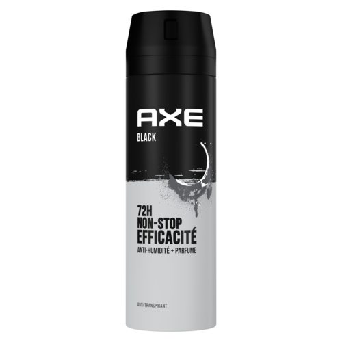 Bienvenue dans le futur, ça sent incroyablement bon ! Reste frais et sens irrésistiblement bon avec le déodorant homme spray anti-transpirant AXE Black. Sa nouvelle technologie combat la transpiration et les odeurs tout en libérant un parfum ultra-frais de baies noires et de bois de cèdre. Grâce à sa formule haute efficacité anti-humidité de 72 h, le déodorant homme anti-transpirant AXE te permet de rester confiant toute la journée. En plus, il est en aluminium 100% recyclable à l'infini, alors recycle-le ! D'ici 2025, AXE s'engage à ce que ses emballages soient recyclables ou contiennent des matériaux recyclés. Tu aimes le parfum de cet anti-transpirant ? AXE Black existe aussi en gel douche pour encore plus de fraîcheur. Depuis 1983, la marque AXE accompagne les hommes au quotidien avec sa gamme complète de soins d'hygiène : déodorants, anti-transpirants, gels douche, shampoings, produits coiffants, baumes après-rasage, eaux de toilette et parfums. Tout ce dont un homme a besoin pour affirmer son style et rester confiant tout au long de la journée. Car ce qui rend un homme attirant, c'est avant tout son propre style. Nos produits ont une fragrance sensuelle aux notes sophistiquées, ce qui te permet de rester frais, confiant et de sentir bon, même lors des coups de chaud du quotidien. Retrouve-nous vite sur les réseaux. Au programme : de l'humour, de la musique, du gaming et de nombreuses surprises !