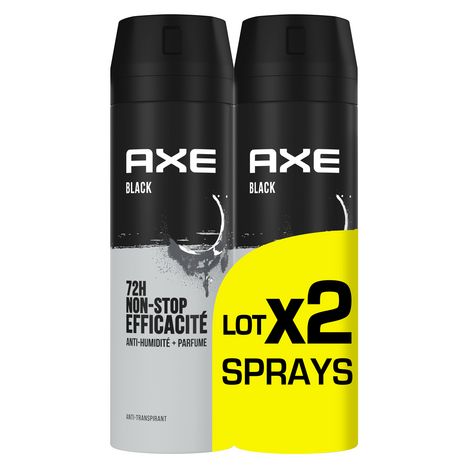 Découvre le déodorant homme spray anti-transpirant AXE Black en lot de 2 x 200 ml.