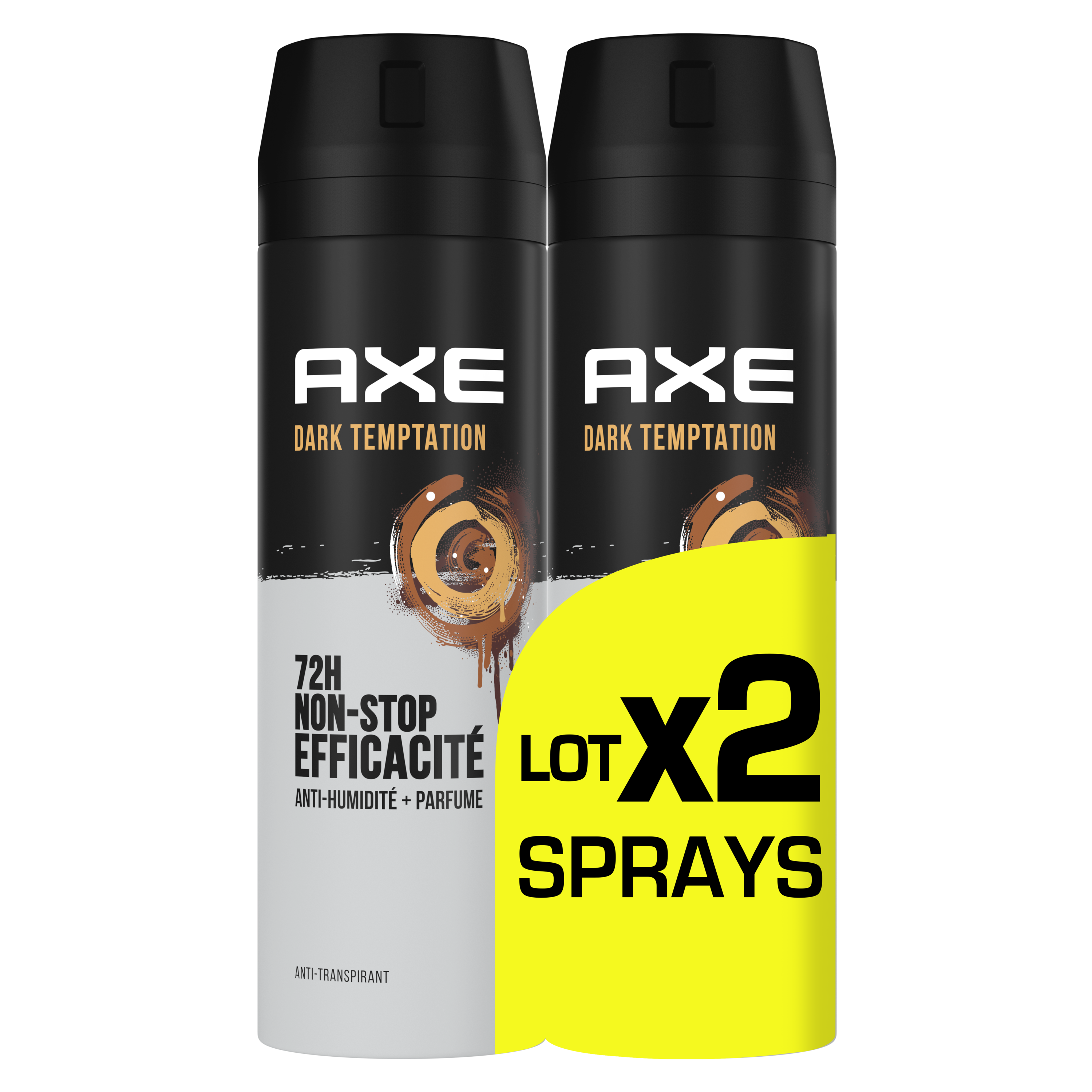 Découvre le déodorant homme spray anti-transpirant AXE Dark Temptation en lot de 2 x 200 ml.