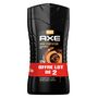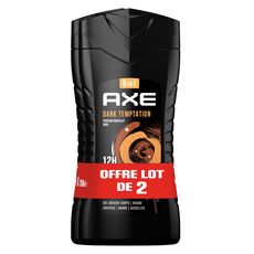 Gel douche homme 5 en 1 AXE Dark Temptation au parfum de chocolat gourmand pour le corps, le visage, les cheveux, la barbe et les aisselles.