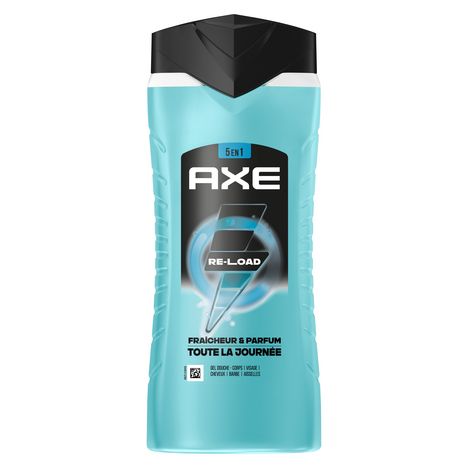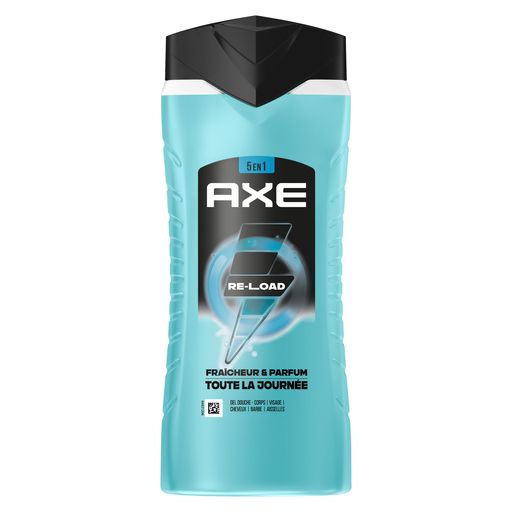 Bienvenue dans le futur, ça sent incroyablement bon ! Sens-toi propre et frais et sens irrésistiblement bon pour plus longtemps avec le nouveau gel douche homme 5-en-1 AXE Re-Load au format 400 ml. Sa formule testée dermatologiquement et composée à 87 % d'ingrédients d'origine naturelle combat les odeurs et assure 24 h d'hydratation. Au pH neutre, elle élimine les bactéries responsables des mauvaises odeurs et offre fraîcheur et parfum toute la journée, tout en respectant la peau des hommes. Cette nouvelle formule est certifiée Peta, ce qui signifie qu'aucun test n'est fait sur les animaux dans le monde entier. Ce gel douche AXE libère un parfum frais et vivifiant pour un effet incroyablement addictif. En plus, sa bouteille est majoritairement recyclable. Dépose-la dans le bac de tri ! Depuis 1983, la marque AXE, N°1 des déodorants en France*, accompagne les hommes au quotidien avec sa gamme complète de soins d'hygiène : déodorants, anti-transpirants, gels douche et eaux de toilette. Tout ce dont un homme a besoin pour affirmer son style et rester confiant tout au long de la journée. Car ce qui rend un homme attirant, c'est avant tout son propre style ! Nos produits ont une fragrance sensuelle aux notes sophistiquées, ce qui te permet de rester frais, confiant et de sentir bon, même lors des coups de chaud du quotidien. *CAM P9 2024 en ventes valeurs HMSM.,