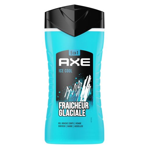 Gel douche homme 5 en 1 AXE Ice Chill au parfum de menthe glaciale et citron pour le corps, le visage, les cheveux, la barbe et les aisselles.