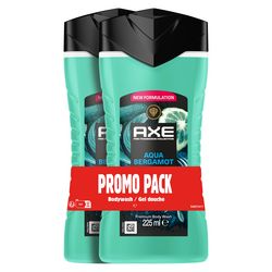 Découvre le gel douche homme AXE Aqua Bergamot au format 2 x 225 ml pour 12 h de fraîcheur.