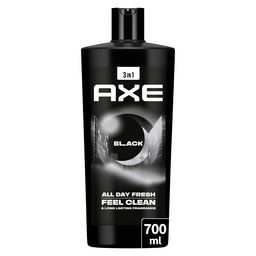 Sens-toi propre et frais, et sens irrésistiblement bon pour plus longtemps avec le nouveau gel douche homme 5-en-1 AXE Black au format 700 ml.