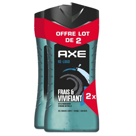 Gel douche 3-en-1 pour homme AXE Re-Load, au parfum frais et vivifiant.
