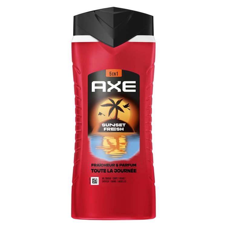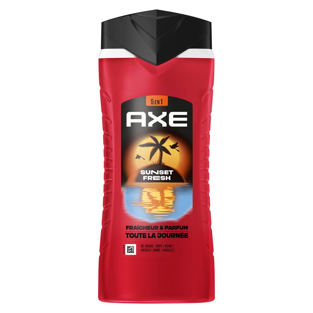 Sens-toi propre et frais, et sens irrésistiblement bon pour plus longtemps avec le nouveau gel douche homme 5-en-1 AXE Sunset Fresh au format 400 ml.