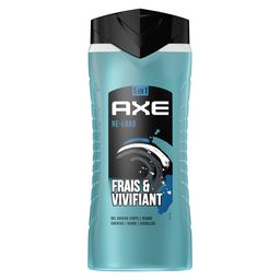 Gel douche homme 5 en 1 AXE Re-Load au parfum frais et vivifiant pour le corps, le visage, les cheveux, la barbe et les aisselles.