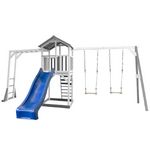 L'aire de jeux en bois BEACH TOWER possède une structure de jeux ouverte à 360 degrés. Elle dispose d'un toboggan de 220 cm avec un raccordement d'eau, d'un bac à sable installé sous la plate-forme pour environ 125 kg de sables et d’une dimension de 105 x 101 x 10 cm. Un portique entièrement conçut en bois et doté d'entretoise pour une meilleure stabilité qui comporte : 2 sièges de balançoires en bois réglable en hauteur et de 2 ancrages au sol pour plus de stabilité et de sécurité. De l'autre côté un support d'escalade avec barres de singes pour grimper encore plus haut et s'amuser à se balancer. La hauteur de la plate-forme est de 117,5cm. Composé de bois Hemlock qui est très résistant, naturellement imputrescible, insensible aux champignons et insectes. Bois non-traité chimiquement, donc plus écologique et plus sûr pour les enfants.100% FSC , donc en provenance de forêts gérées selon des principes de développement durable.