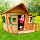 Cette superbe maisonnette en bois robuste et biscornue assurera des heures d'amusement à vos enfants. Elle possède une terrasse avec balustrade et une extension attenante. Livrée peinte elle est réalisée en bois imputrescible ne nécessitant aucun entretien. Toit imperméable en bois avec cheminée. Fenêtres en plexiglas (4 fenêtre ouvrantes: une sur chaque coté, une devant et une derrière). Fenêtres et porte avec fermeture aimantée. Livrée pré-montée avec plancher légèrement surélevé pour ne pas abîmer la pelouse et éviter l'humidité.
