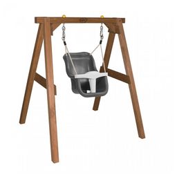 L'ensemble de balançoire pour bébé AXI est parfait pour initier les bébés et les tout-petits aux activités de plein air. Explorer le monde extérieur avec cette balançoire pour bébé offre une première balançoire sûre et sécurisée. Apprendre à se balancer est une grande expérience pour votre enfant. Ils développent leur équilibre, leur coordination et leur force. Le bois assure qu'il s'intègre parfaitement à l'environnement naturel du jardin. L'AXI Swing est disponible dans les mêmes couleurs que les cottages AXI, il est donc parfaitement coordonné à votre jardin. L'ensemble de balançoire pour bébé comprend un siège de balançoire pour bébé de luxe avec un dossier haut pour plus de confort. Barre en T avec 3 points d'appui et une sangle de sécurité supplémentaire pour une sécurité maximale. Les anneaux et les ajusteurs sont en acier galvanisé. Les soudures sur les cordes sont en PP. Le siège convient aux enfants de 9 à 36 mois. Durabilité Le cadre de balançoire est construit de manière unique en 100 % Hemlock FSC solide et durable et équipé de renforts pour plus de stabilité. Le bois provient de forêts gérées durablement et constitue donc également un choix respectueux de l'environnement. Ce type de bois ne se fend pas et est naturellement résistant aux intempéries comme la pluie et donc à la pourriture du bois. Le bois est également traité avec une teinture à base d'eau, sans produits chimiques. Vous n'avez pas besoin de traiter la balançoire avant utilisation, les enfants peuvent immédiatement jouer avec elle en toute sécurité. Avec une période de garantie de 10 ans, vous et vos enfants pouvez profiter d'années sans soucis. Sécurité Les balançoires d'AXI sont marquées CE et sont testées et produites selon les normes de sécurité EN 71 afin que le plaisir de jouer en toute sécurité soit garanti.