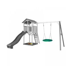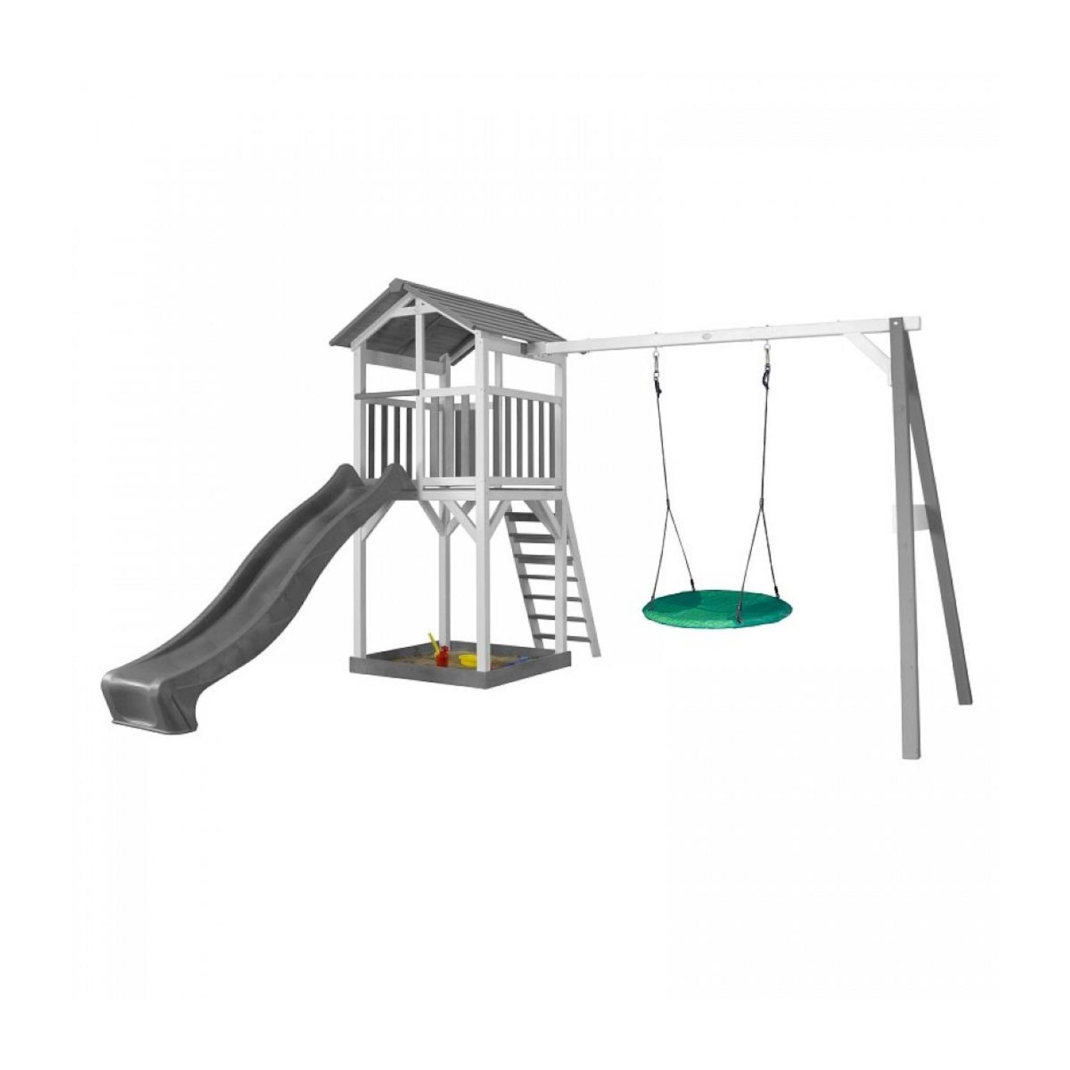AXI Structure de jeu Beach Tower avec 1 balancoire siege nid rond Blanc Gris avec Toboggan Gris