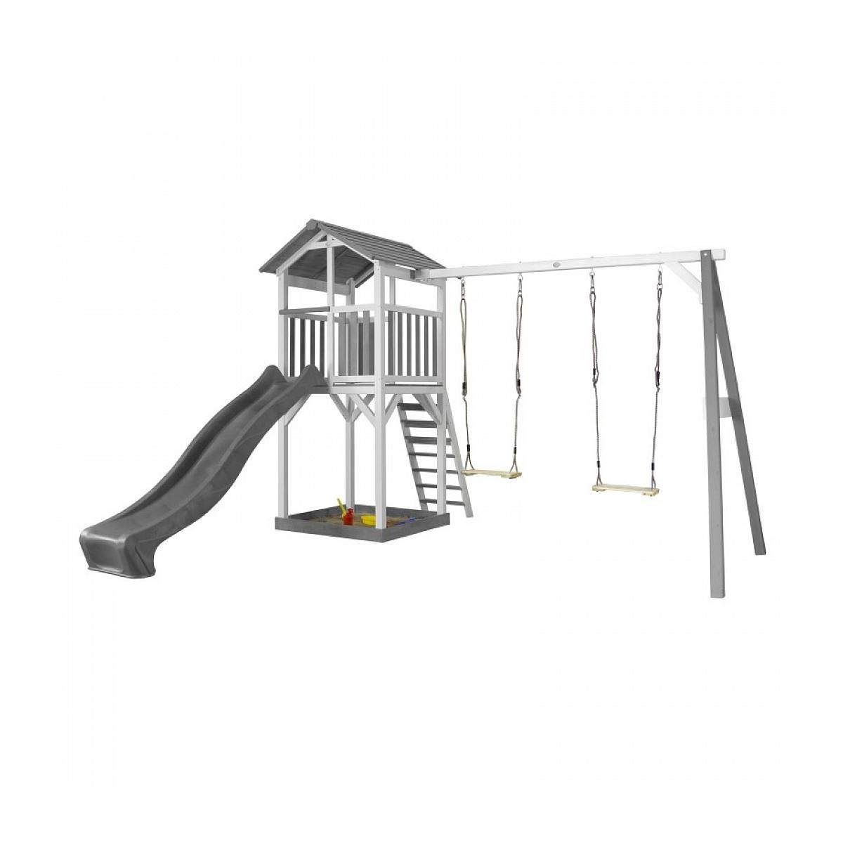 AXI Structure de jeu Beach Tower Blanc Gris avec 2 balancoires et toboggan Gris