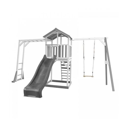 AXI Structure de jeu Beach Tower Blanc Gris avec cadre d'escalade balancoire et toboggan Gris